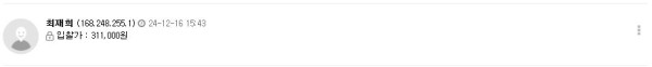 - 마감 이후에 입찰하는 최고가는 자동 탈락
