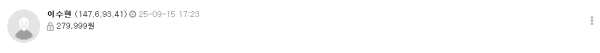 이수현님 279,999원으로 낙찰되셨습니다 축하드립니다