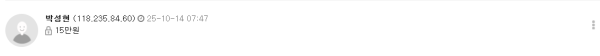 박성현 조합원님 15만원 입찰하셨습니다