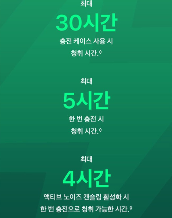 노이즈캔슬링 여부: 액티브노이즈캔슬링(ANC)