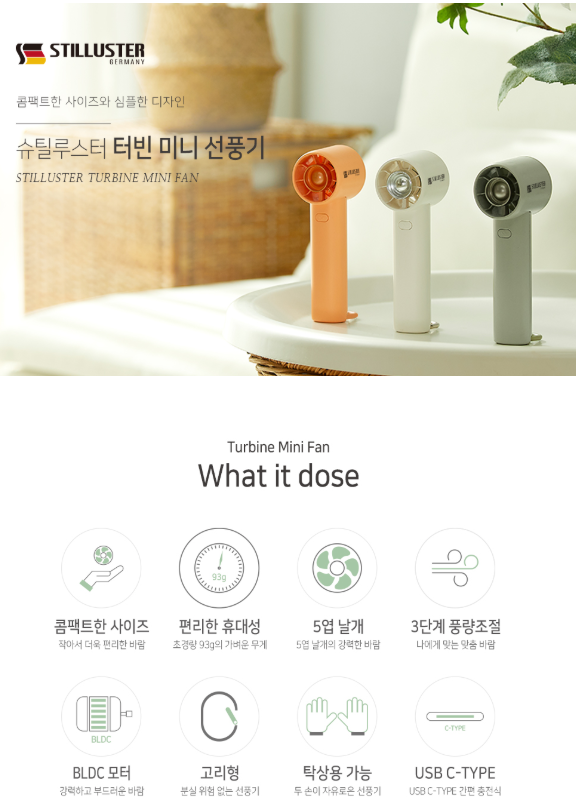 [터빈선풍기] 5엽 강력한 휴대용 선풍기 귀여운 작은부피 3단계 8900원 (화이트, 올리브,오렌지 품절)