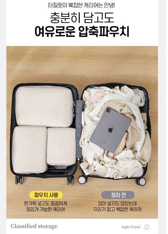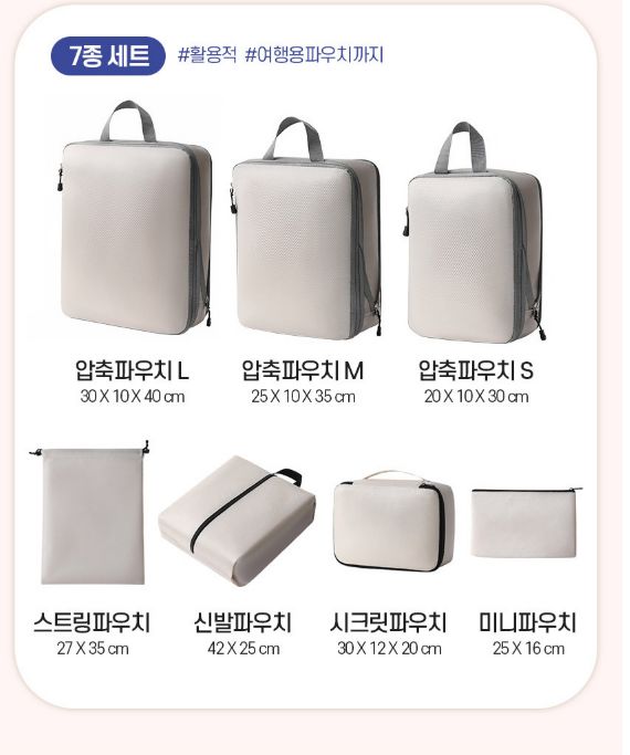 [마감] 압축파우치 7종세트 캐리어파우치 정리백 의류보관 압축백