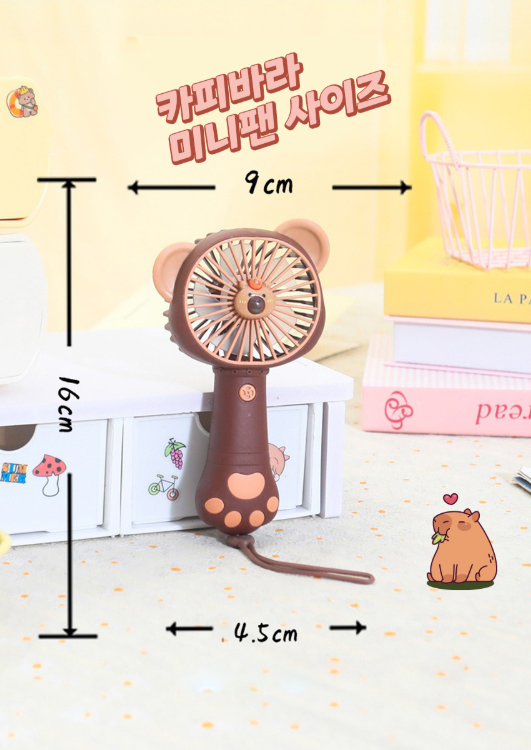 [마감] 카피바라미니팬/USB충전/휴대용선풍기/손선풍기