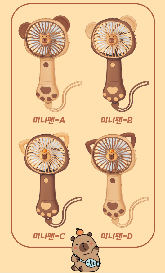 [마감] 카피바라미니팬/USB충전/휴대용선풍기/손선풍기 > 공동구매 게시판