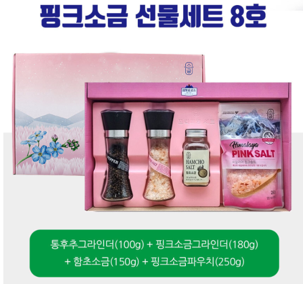 [마감] 핑크소금 선물세트 8호 (통후추그라인더100g+핑크소금그라인더180g+함초소금(150g)+핑크소금파우치(250g) > 공동구매 게시판